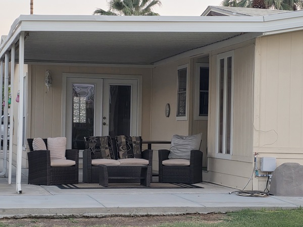 charging and maintenance of the golf cart. Patio furniture is included, as well